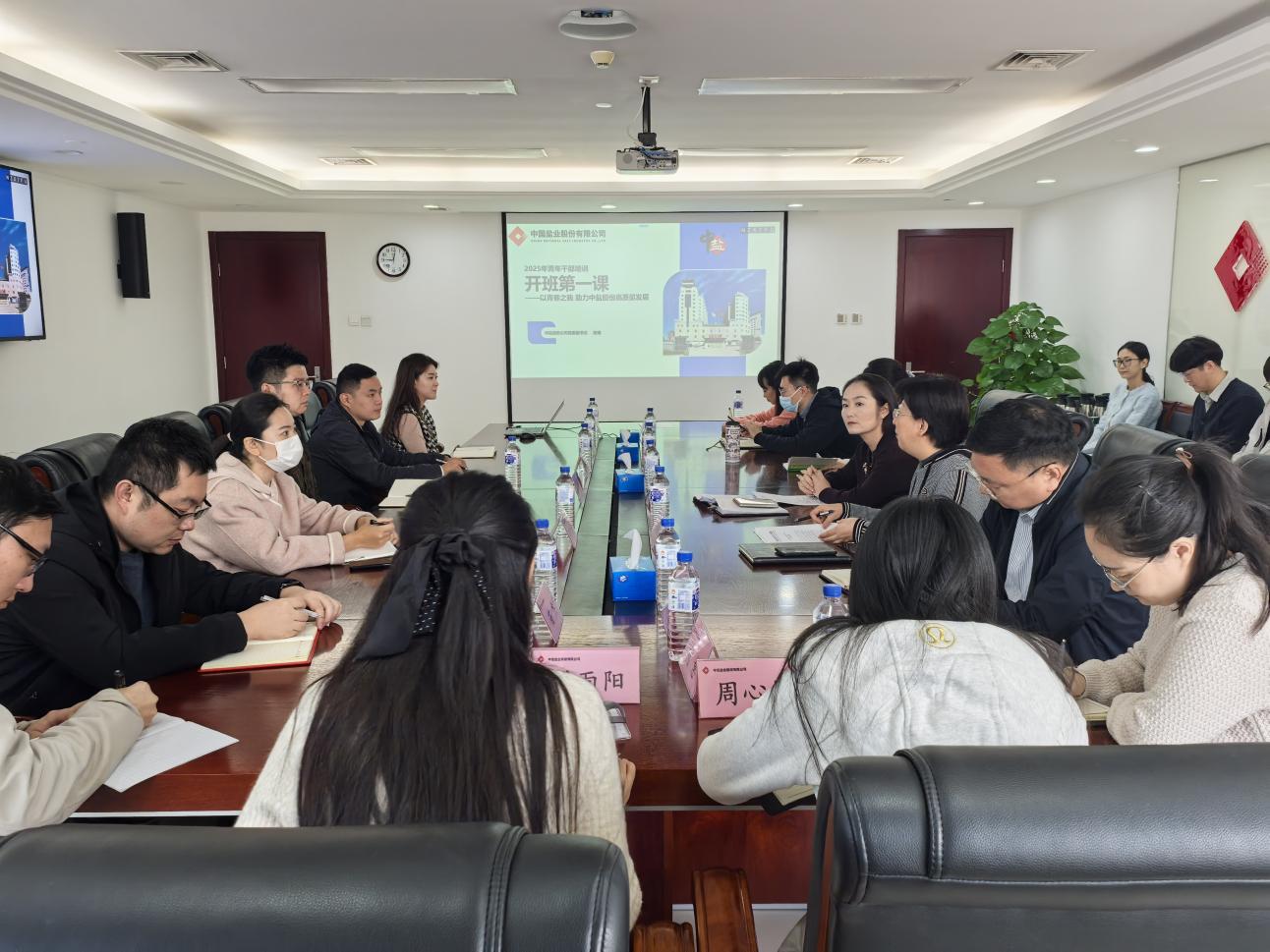 中盐股份公司领导人员以“以青春之我 助力中盐股份高质量发展”为题讲授了开班第一课。首先对新员工的加入表示热烈欢迎,从中盐股份公司的“企业文化”、“公司治理”及“社会责任”三个方面和青年干部们进行分享交流。其次,围绕“立志”“立身”“立行”,对青年同志们寄予了三点期望:一是要志存高远,将个人的理想追求融入公司发展事业当中;二是要以学为基,强化自我修养、锻造过硬本领,做到政治过硬、能力过硬、作风过硬、廉洁过硬;三是要于实处用力,在知行合一上下真功夫,以知促行、以行求知。